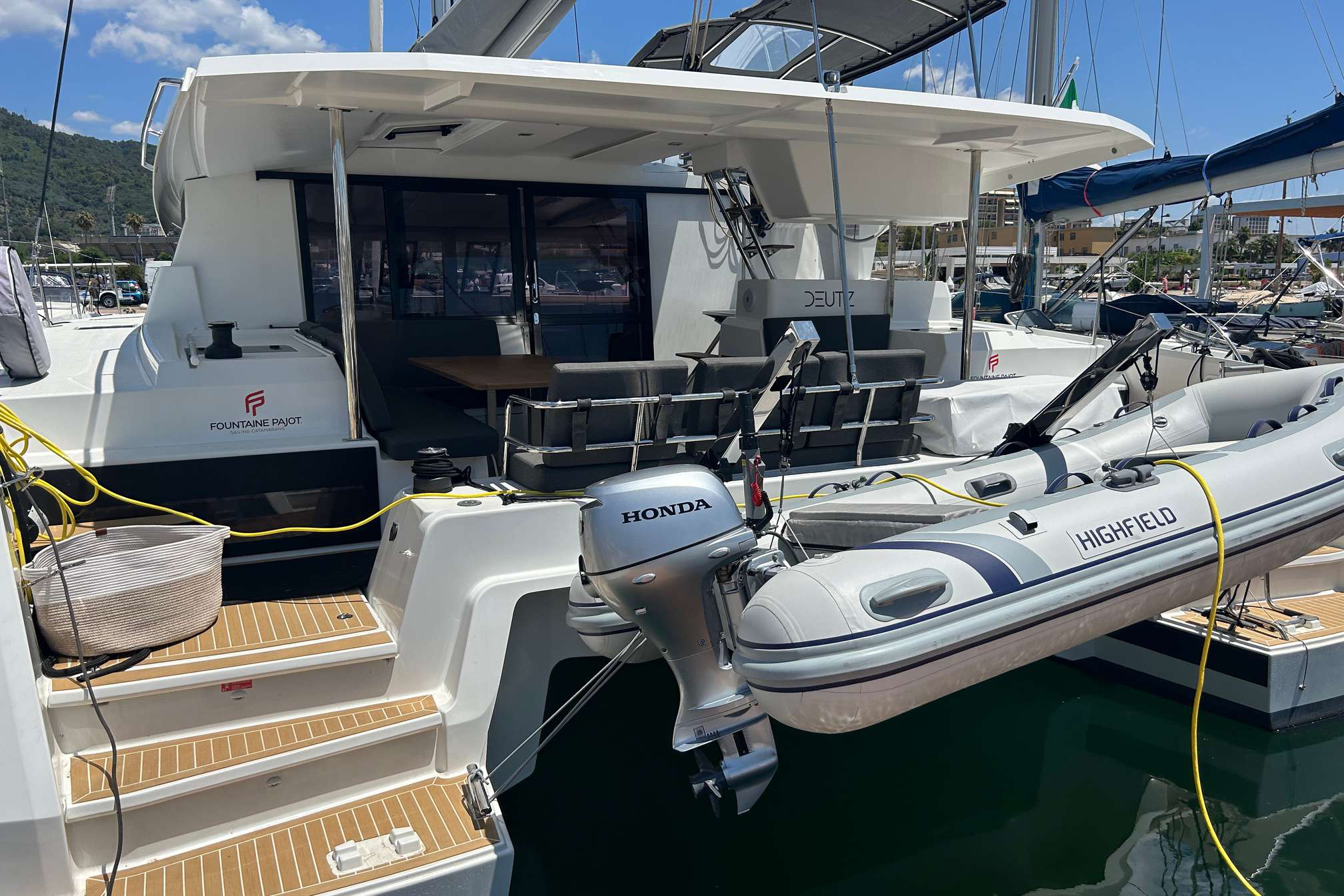 Courtesy pack ( bed sheets + covers, towel set large/medium, fully equipped kitchen, cleaning products, coffee machine + caps, gas bottle, tender with outboard engine 10 Hp)