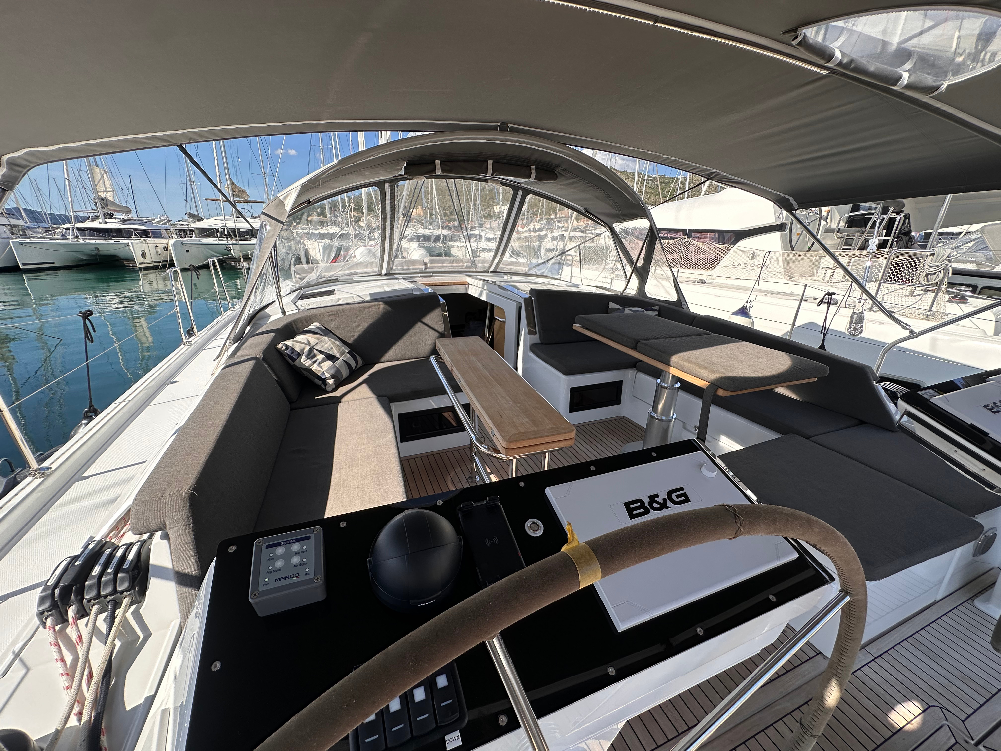 • Included in price (unlimited WiFi, outboard engine 2,5 HP and dinghy,berth in marina Baotic,standard equipment, Nespresso coffee machine, cockpit cushions, VAT 13%, linen and towels)