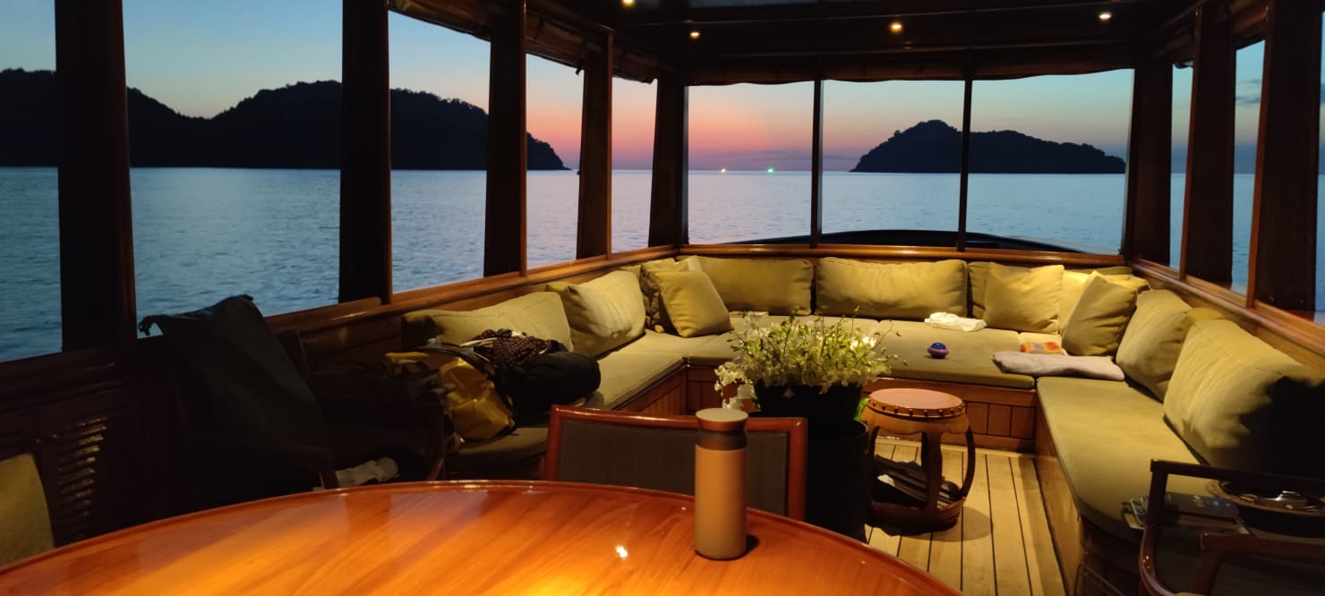 Snorkeling equipment, Fishing gear, Kayak, SUP, Dinghy, Bluetooth speakers, AC, BBQ/Grill, board games, 5 person crew